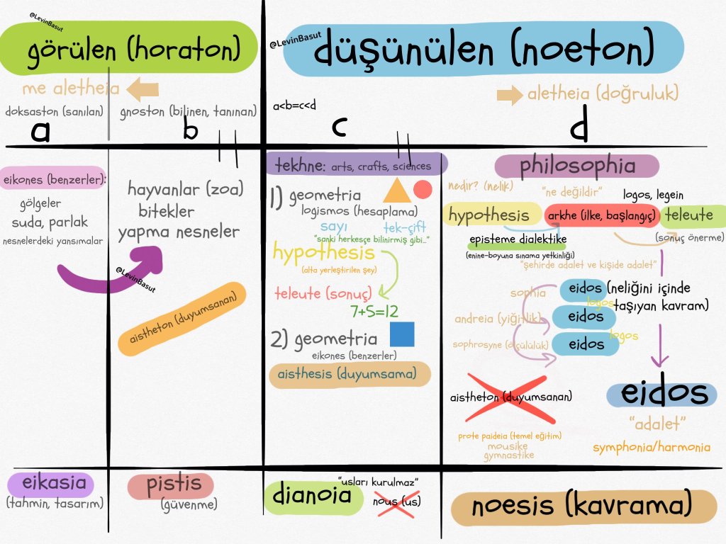Platon burada temel bir dert görmekte, nitekim bu alan kaydırması soruşturmanın sağlamlığını zedelemekte. Onun yakaladığı ve işaret ettiği bu soruna, Kant -doğrudan olmasa da- apaçık bir yanıt veriyor. Kant geometricinin nesnelerini bir kağıda ya da tahtaya çizmesinde, geometricinin işini zedeleyecek bir yan olmadığını, aksine geometricinin işini kotarabilmesinin ve sapasağlam kotarabilmesinin tek yolunun bu olduğunu göstermekte. Nitekim geometricinin nesneleri saf bir bakma kalıbı olan uzaydan hareketle kurulur. Kant’a göre zihinde mükemmel bir üçgen olarak “üçgenin kendisi” görülemez. “Üçgenin kendisi” zihinde bir kurala ve kavrama işaret eder ne ki zihinde bir resim (Bild) olarak görülemez (Bkz. KrV, B 180 | A 141) çünkü bu kuralın altına düşen pek çok görü vardır (Örn.: ikizkenar üçgen, eşkenar üçgen, çokkenar üçgen). O halde “üçgenin kendisi” tek tek üçgen görülerinin onun altına getirilebileceği bir kural ve bir kavramdır. Görünüşlerin saf kısmı yani saf çokkatlılık, geometricinin hesaplamasını yaparken kullandığı alandır ve o, nesnelerini kurmak için ve nesnelerinin ayırdına varmak için, bu alanı kullanmak durumundadır. Dolayısıyla onun Görünüşler alanına gitmesi, yaptığı işin sağlamlığını zedelemez. Onun upuygun nesneleri zaten bu alandadır. Ne ki o, Görünüşlerin içerisindeki empirik olan kısımla değil saf kısım ile iş görmektedir. Üçgen, Platon’un da ifade ettiği gibi görülen bir kavramdır, bir düşünce ürünüdür (horomenon eidos) (Bkz. Politeia, 510d-e).